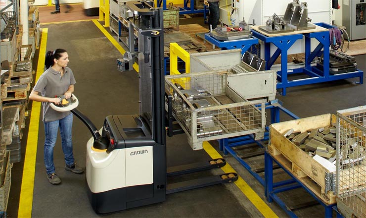Crown皇冠叉車ES系列堆高機采用高耐久性和高動力設計,具有超長的使用壽命。幾乎免維護的三相交流牽引控制電機,在任何速度條件下均可提供良好的加速和控制性能。允許以慢速模式操作,使控制手柄以接近垂直的角度實現(xiàn)精確操控。創(chuàng)新的X10控制手柄通過快速/慢速開關(guān)實現(xiàn)兩級可編程行駛性能,操作員可根據(jù)經(jīng)驗水平或具體任務快速選擇設置。