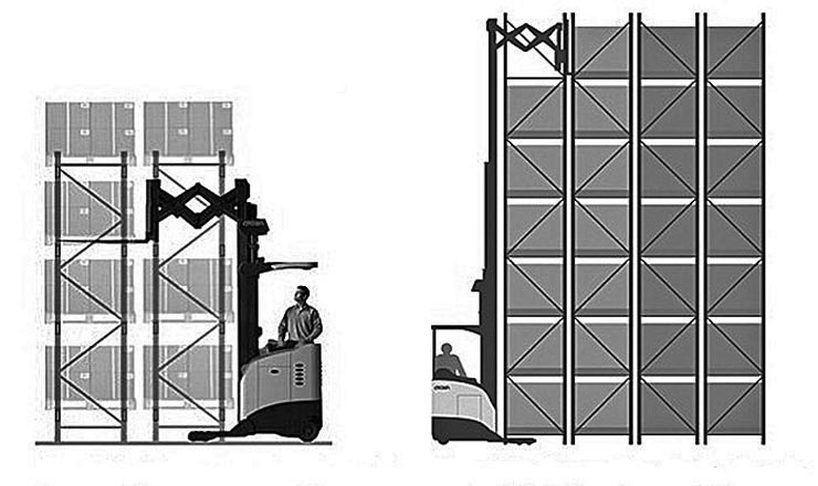 3、屬于窄通道貨架之一——貨架之間通道寬度一般需要在3—3.3米左右;