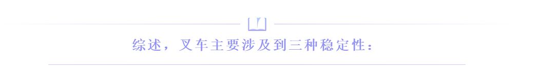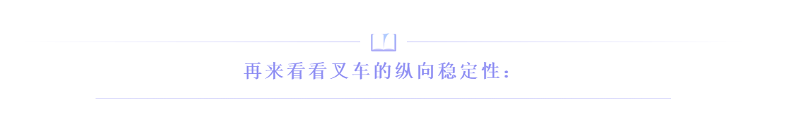 叉車的縱向穩(wěn)定性,是考查叉車抵抗向前傾翻的能力,主要是堆垛。一個物體是否穩(wěn)定,取決于這個物體在系統(tǒng)一端產(chǎn)生的重力矩是大于、等于還是小于這個物體在該系統(tǒng)另一端產(chǎn)生的重力矩。載荷到叉車支點的矩等于叉車在支點另一端產(chǎn)生的矩,那么整個車輛是平衡的并且不會移動。否則,如果在支點一端的力矩大,車輛將會移向力矩大的一端。載荷產(chǎn)生的力矩小于叉車重量產(chǎn)生的力矩時,叉車是穩(wěn)定的,不會向前傾翻;載荷產(chǎn)生的力矩大于叉車重量產(chǎn)生的力矩時,較大的載荷力矩將迫使叉車向前傾翻。