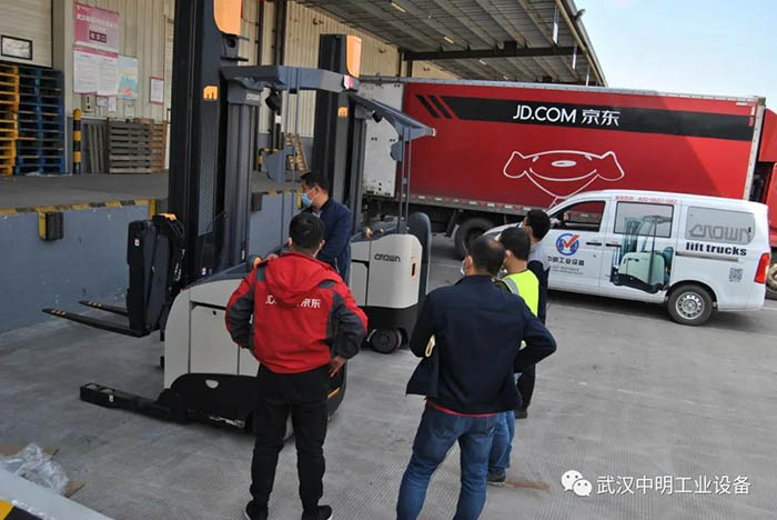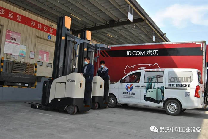 武漢中明多臺(tái)雙深度叉車交付京東,助力抗疫期民生物資搬運(yùn)